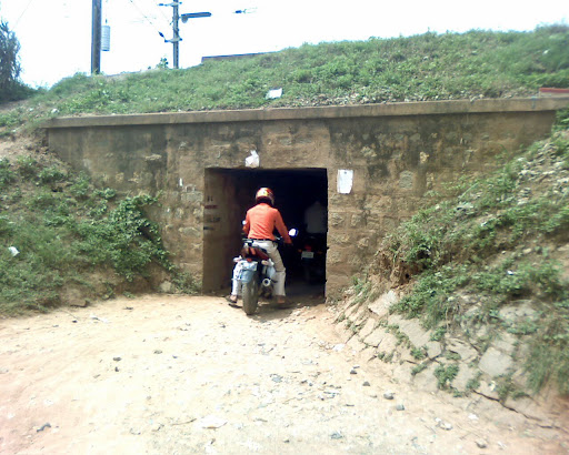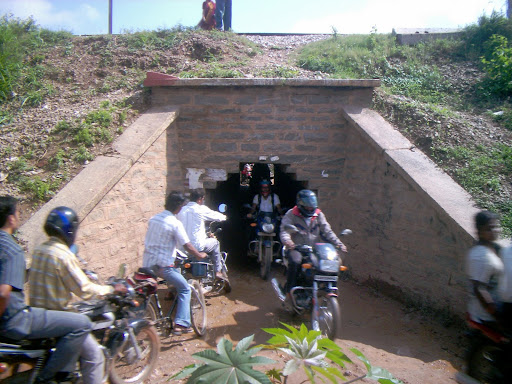 It was NOT an underpass! It was a narrow gutter/storm drain. Wide enough for only one bike at a time to pass, it was a dark, dingy wet tunnel (missed the bats). Barely wide enough to let your handlebar and shoulders thru' and also tall enough not to scrape your helmet (I was ducking anyhow). Was fun crossing it! Infact when I emerged into daylight on the otherside, I was suprised to see another similar line of vehicles waiting to come in.