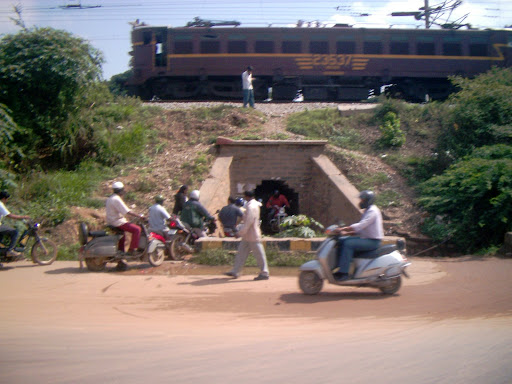 Continued over the hanging bridge after some last minute mind switches! Crossed it after years! The ramp approaching it seemed overly undulating! Anyway, I crossed the bridge to notice a gap in the median as soon as I descended on the other side, I noticed a gap in the median and vehicles crossing over to the right! "Just what I was looking for" I thought, taking it. Turned around and this time I didn't climb back onto the flyover (afterall I didn't wanna go back). Took the service road besides it. Kept going till I reached a virtual dead end (that was comprised of the KR Puram Railway Station and the ITI Factory). Saw most riders taking a detour towards the left though (in the direction I too wanted to head to). Followed them.